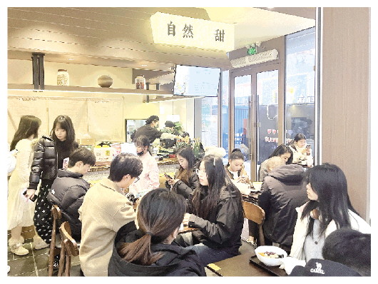 记者在这家店看到,店内装修为新中式风格,木质的桌椅、暖黄的灯光,配上窗外的春光,显得格外惬意。“开春以来,客人明显多了。尤其是到了周末,下午两三点就开始上人,一直忙到晚上。多为逛完景区的游客和年轻人。”店主说。