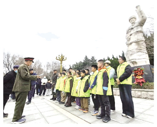 青少年志愿者身穿志愿者服装,来到仓圣公园内的标志性建筑——雷锋塑像前,认真地聆听老兵苗雨昌的红色宣讲(下图)。老人用朴实无华的语言,从“雷锋出差一千里,好事做了一火车”讲起,向大家讲述雷锋故事,并结合自身生活、工作经历,引导大家学习雷锋爱岗敬业、无私奉献、乐于助人的好品格,让红色基因代代相传。不少游人自发地站在队伍外围,成为这场活动的“特殊听众”。