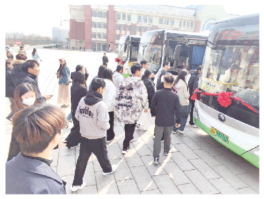 本报讯(记者 李中伟 通讯员 曹宗堂 刘光军 刘赋禄)3月21日上午,6辆悬挂“职工周末消费直通车”标识的新能源公交车在潍坊食品科技职业学院校门口整装待发。随着车门缓缓开启,首批教职工和学生凭工作证、学生证有序上车,这条专为该校师生定制的免费专线正式投入运行,彻底解决了偏远校区师生周末往返主城区的出行难题,打通了城郊出行“最后一公里”。