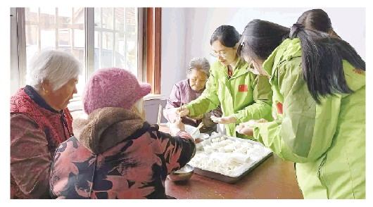 3月21日,诸城市阳光社会工作服务发展中心的志愿者来到诸城市龙都街道玉带村助老食堂,为众多老人包水饺,让助老食堂成为暖胃更暖心的幸福阵地。 本报记者 刘晓梅