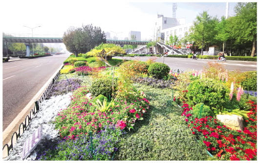 东风东街与北海路交叉口北侧路中间的绿化隔离带,同样新打造了一处花境,通过对不同花卉、植物的科学搭配,打造出层次丰富、季相鲜明的生态景观。两处花境虽然面积不算很大,但通过精心统筹设计,营造出一种“源于自然、高于自然”的植物景观,仿佛是在路中间“长”出来的小型花园,让过往车辆的驾驶员备感心旷神怡。
